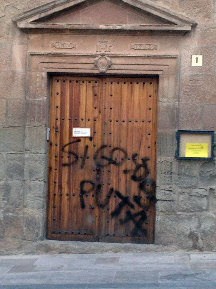 El dissabte al matí a la porta de l'ajuntament hi han fet una pintada