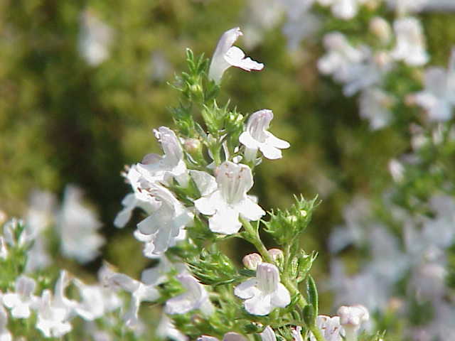 És una petita mata de 20 a 40 cm que només és llenyosa a la base. Fulles oposades, oval-lanceolades, de 1-2 cm de llarg i 5 mm d'ample. Les flors són blanques o violàcies. Tota la planta, i principalment les fulles, desprenen una olor forta i tenen un sabor astringent i amargant.